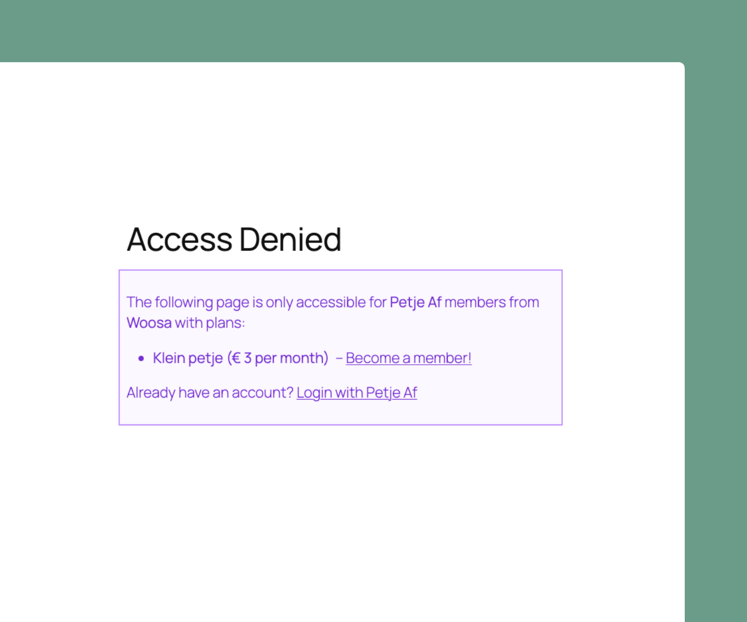 Wanneer een pagina voor een gebruiker geblokkeerd is, verschijnt de melding ‘Toegang geweigerd’. Deze melding wordt weergegeven in uw huisstijl kleuren.